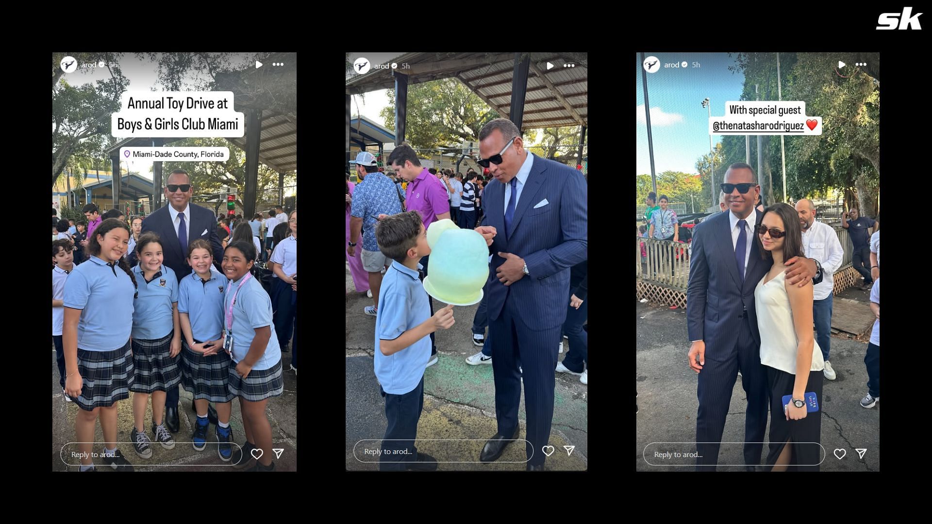 Alex Rodriguez along with his company employees and his elder daughter Natasha, met with the kids present at the club and gave away age-appropriate gifts to them. Children aged between 5 to 17 participated in the toy drive, which was followed by a Holiday party.