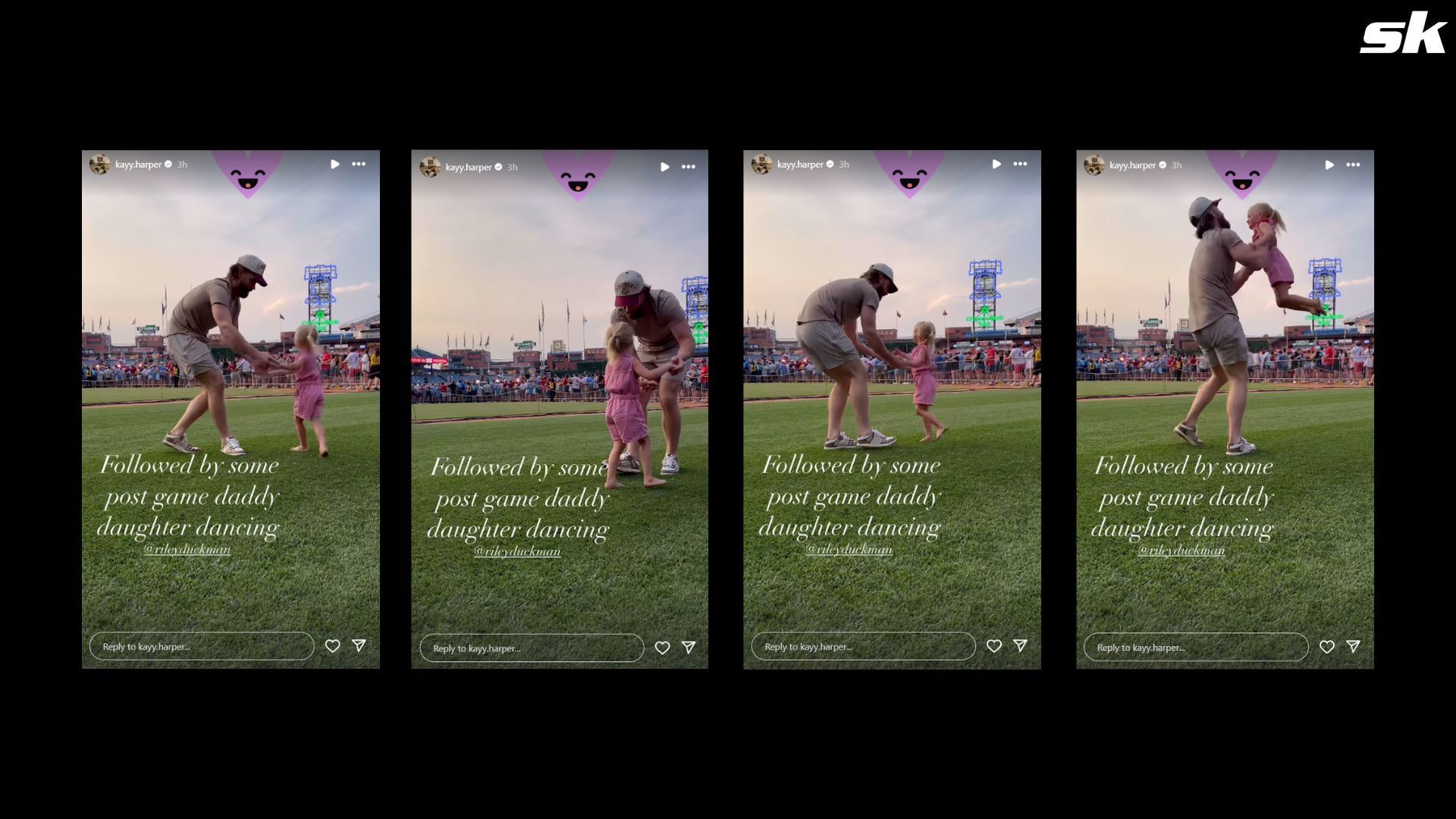 While the Phillies won the contest, especially by a scoreline of 12-1, Kayla Harper captured adorable moments between Bryce Harper and his elder daughter Brooklyn Elizabeth as they showcased some heartfelt 'daddy-daughter' dancing moments on the field at Citizens Bank Park. She captioned her Instagram story: