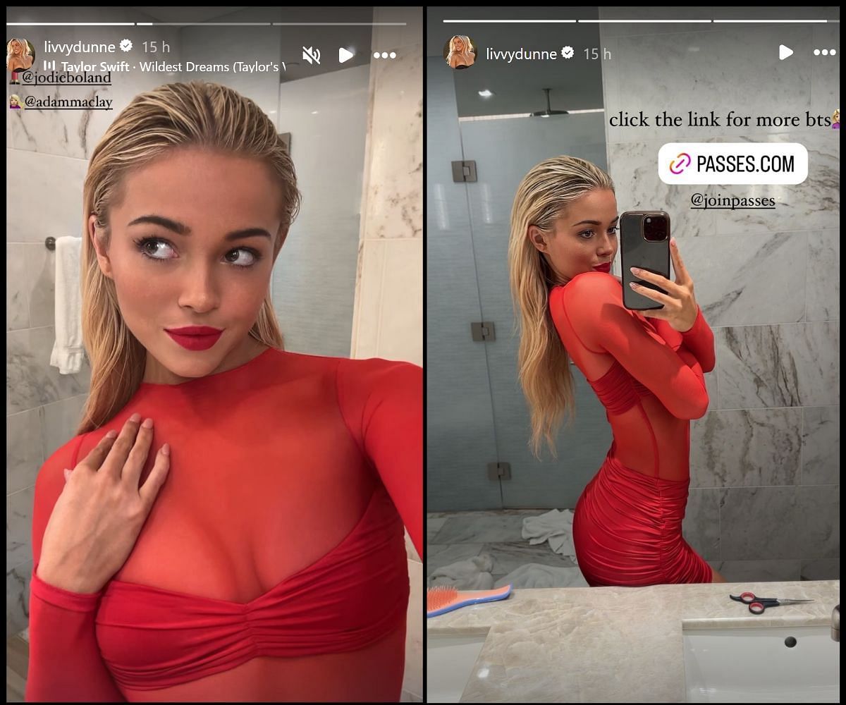 Dunne took to her Instagram on Friday to share some snaps of her in a sheer red ensemble, where she was vibing to Taylor Swift's "Wildest Dreams."