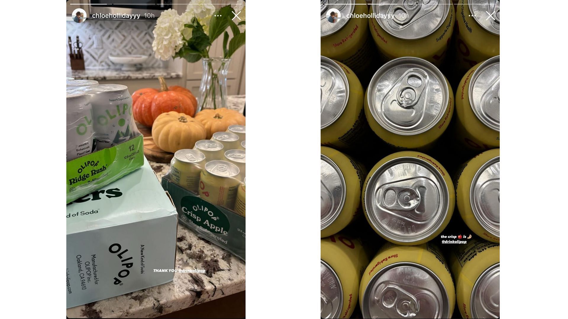 In the Instagram story, Chloe gives thanks to Olipop and singles out their Crisp Apple flavor as her favorite.