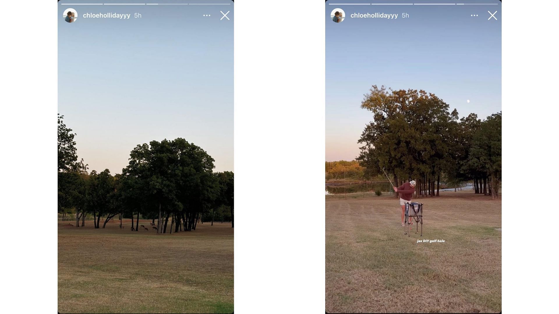 Over the past few weeks, Chloe has shared several activities that the couple has kept themselves busy with and the latest is DIY golf. She recently shared a story of her husband trying out a sport with the caption: