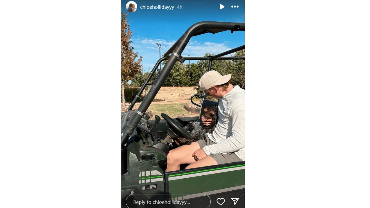 In the latest post from Chloe, Holliday can be seen driving a jeep with Coconut sitting beside him. After breaking somewhere, what seems to be the middle of a forest, both embraced each other.