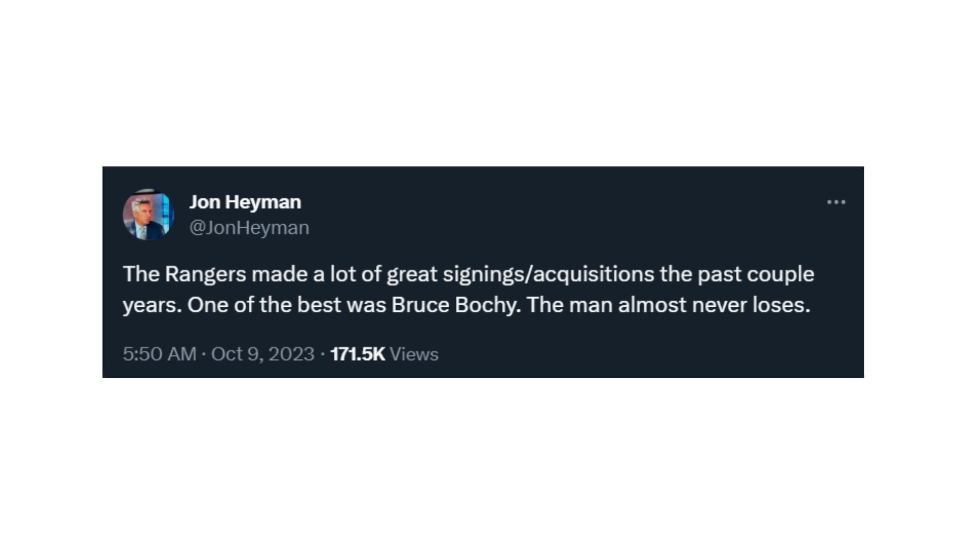 "The Rangers made a lot of great signings/acquisitions the past couple years. One of the best was Bruce Bochy. The man almost never loses," Jon Heyman said.