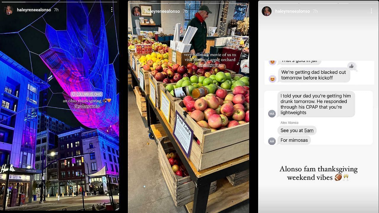 Haley shared a picture of what looked like a parade in Ohio. One of the other stories captured their visit to a 'local apple orchard.' She also shared her plans for the Wolverines-Buckeyes game.