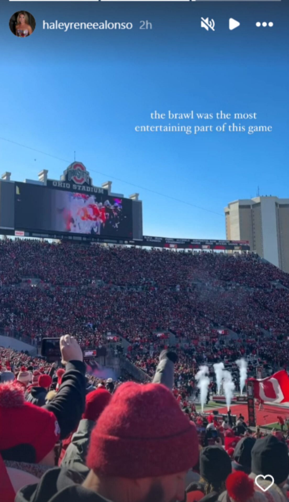 "The brawl was the most entertaining part of the game," she captioned one of her stories.