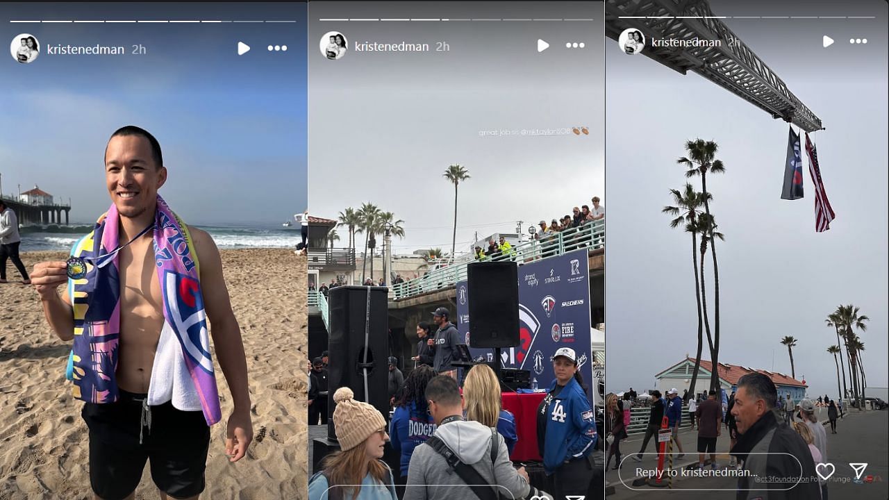 In another photo, she also captured Edman flaunting his medal, which was given to everyone participating in the plunge.