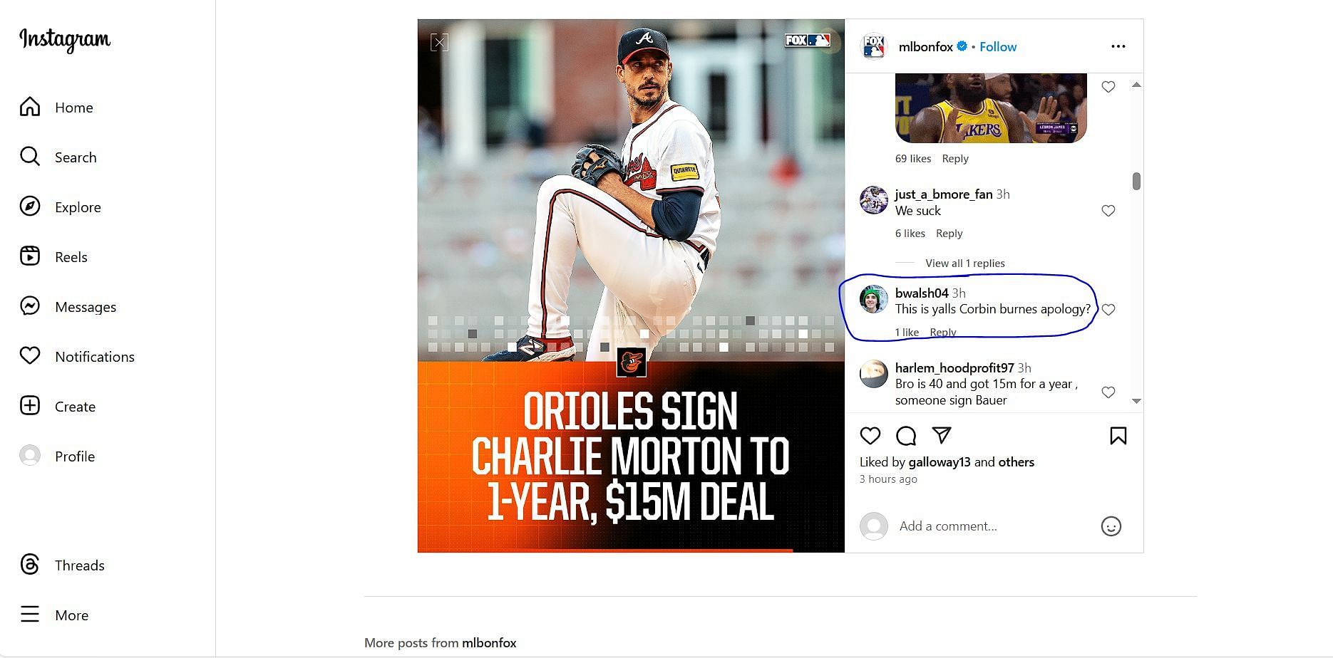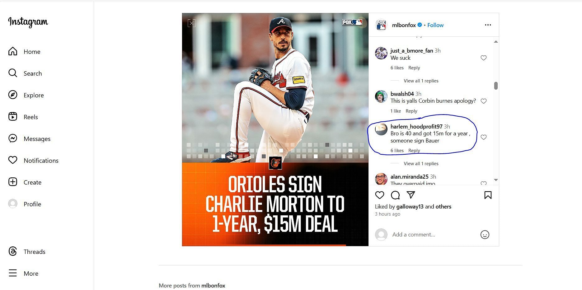 Here’s a closer look at what some fans on Instagram had to say about Morton’s new contract with the O’s: