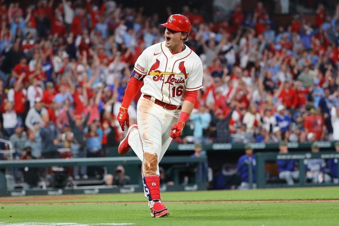 The current St. Louis Cardinals jersey consists of the Cardinal red, midnight navy blue, yellow, and white.