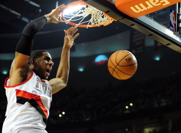 LaMarcus Aldridge #12 of the Portland Trail Blazers dunks the ball in the second half of Game Four of the Western Conference Quarterfinals against the Houston Rockets during the 2014 NBA Playoffs at the Moda Center on April 27, 2014 in Portland, Oregon. The Blazers won the game 123-120.