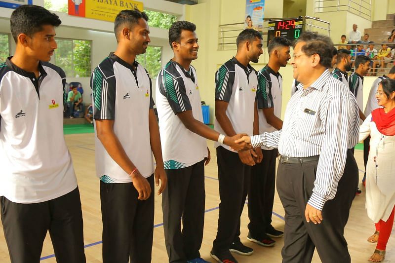 The tournament was inaugurated by the lighting of the lamp by several former Indian internationals of Vijaya Bank and in the presence of local MLA Mr. C.A. Ashwath Narayan, Mrs. R.A. Sankaranarayanan, M.D and CEO of Vijaya Bank, Mr. Y. Nageswara Rao, Executive Director and other General Managers of the Bank.