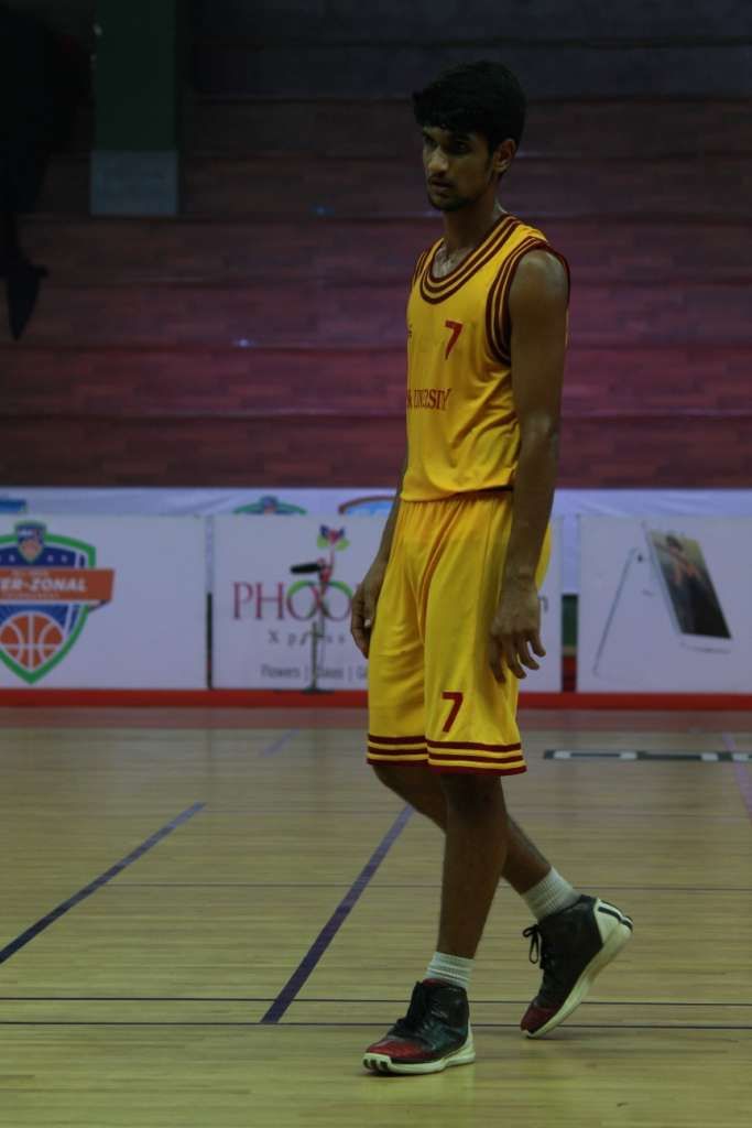 It was Muim Bek of Anna University who charged his team to victory with consecutive 3 pointers in the final quarter of the game. The match had a very energetic start as Anna University, wearing yellow, downed the first ball within the initial few seconds while the team from the same city, University of Madras pulled one back in no time. And this tug of war continued all throughout the match, except the last quater.