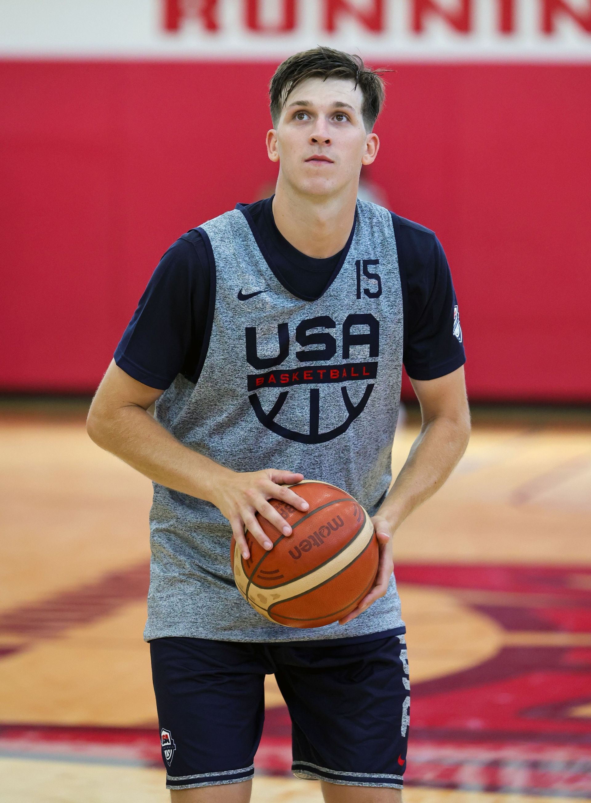 Austin Reaves wears the number #15 and plays for the Los Angeles Lakers.