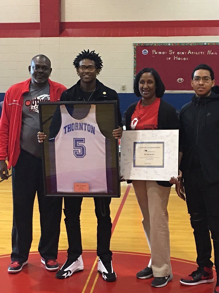 Fox’s father, Aaron played college football at Fort Hays State University in Hays, Kansas. He always took keen interest in his son’s development as a basketball player. Fox's high school basketball coach, Emmanuel Olatunbosun, quoted saying that his father was a "bonafide athlete," who instilled the importance of being a well-rounded player in his son. Aaron's focus on more than just scoring points left a lasting impression on his son, who has evolved as an unselfish player.