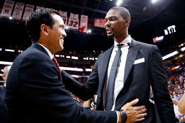 Prior to the honoring of Manu Ginobili, on Tuesday, March 26th, 2019 The Miami Heat also honored a former star in Chris Bosh raising his No.1 jersey to the rafters.