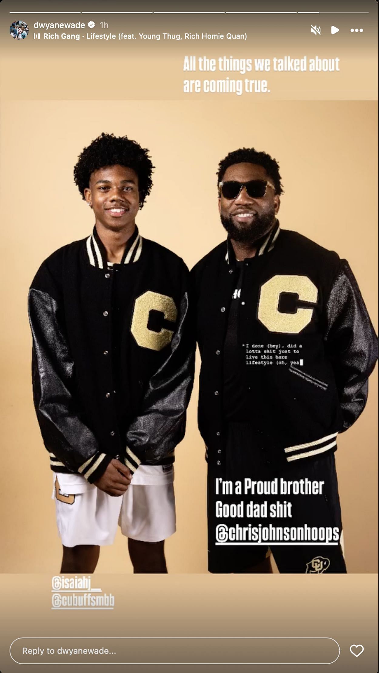 Hall of Famer Dwyane Wade and his longtime friend and basketball trainer Chris Johnson have plenty of reasons to celebrate as of late. In August, Chris' son Isaiah Johnson, committed to play for the Colorado Buffaloes after receiving several offers from various schools.