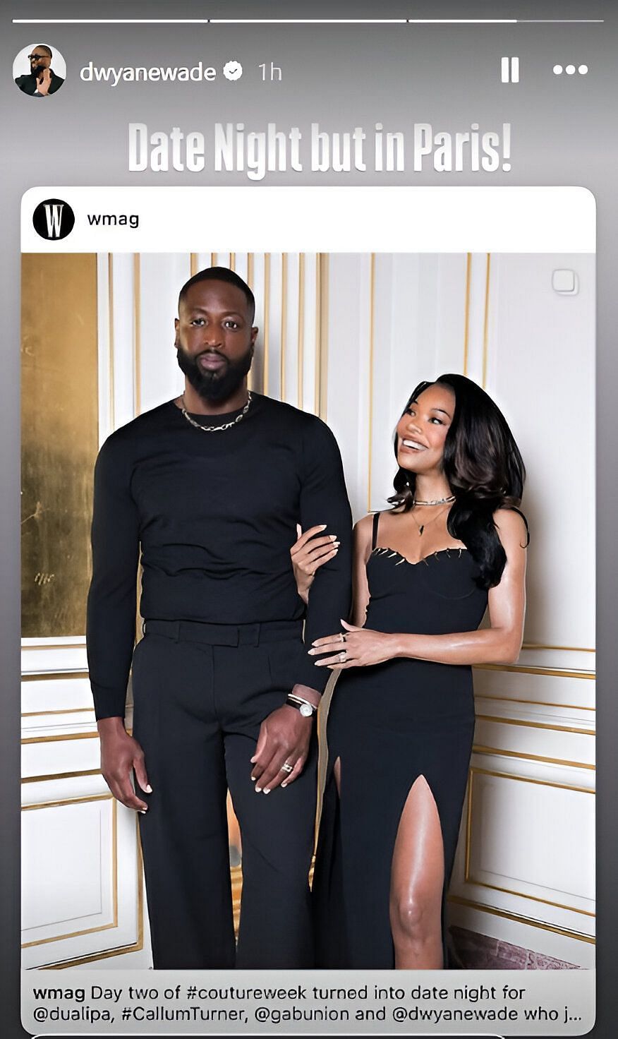 Wade flaunted the couple’s choice of outfit through his social media. The Miami Heat legend shared W Magazine’s post on his Instagram story and captioned it: