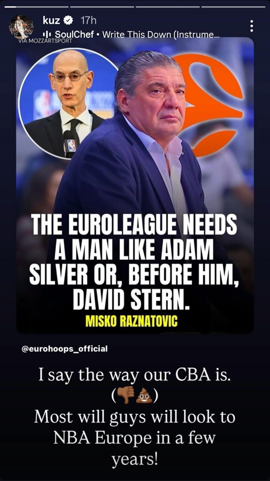 “I say the way our CBA is. (👎💩) Most guys will look to NBA Europe in a few years!” he wrote.
