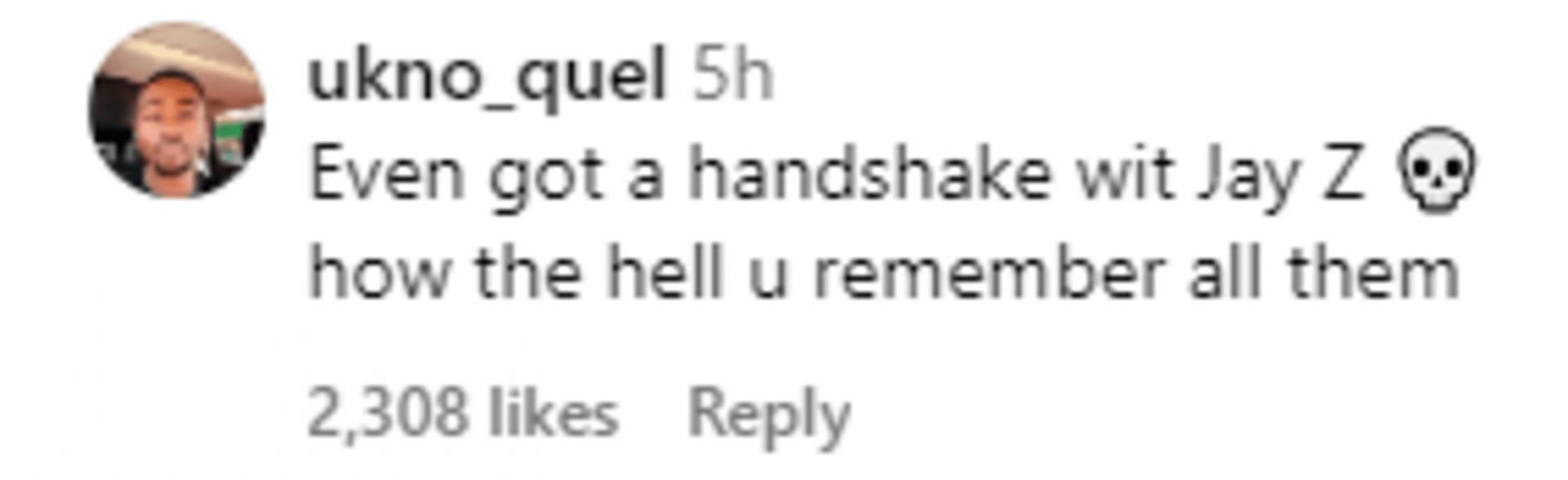 "Even got a handshake wit Jay Z 💀 how the hell u remember all them"