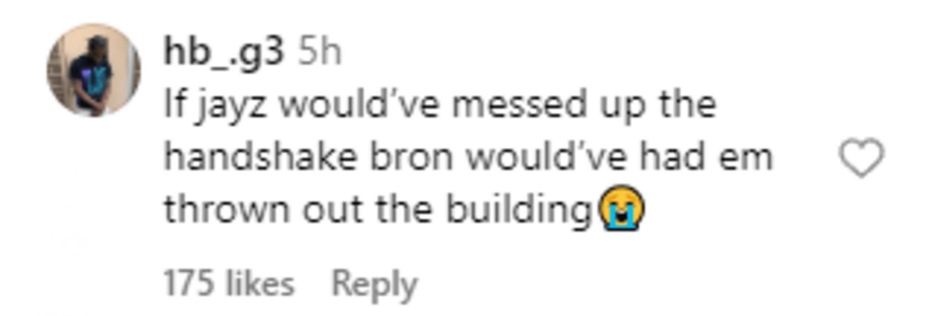 "If jayz would’ve messed up the handshake bron would’ve had em thrown out the building"