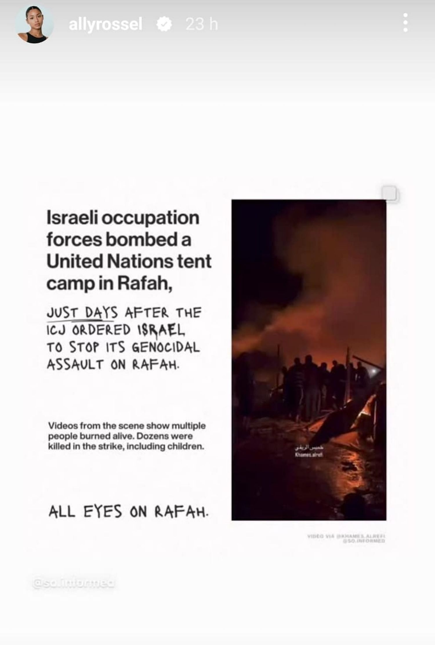 Lonzo Ball's girlfriend, Ally Rossel, also took to her Instagram story with another image that explained what took place in Rafah. After recapping the incident, the post shared by Rossel used the same 'All Eyes on Rafah' tag as part of the online trend.