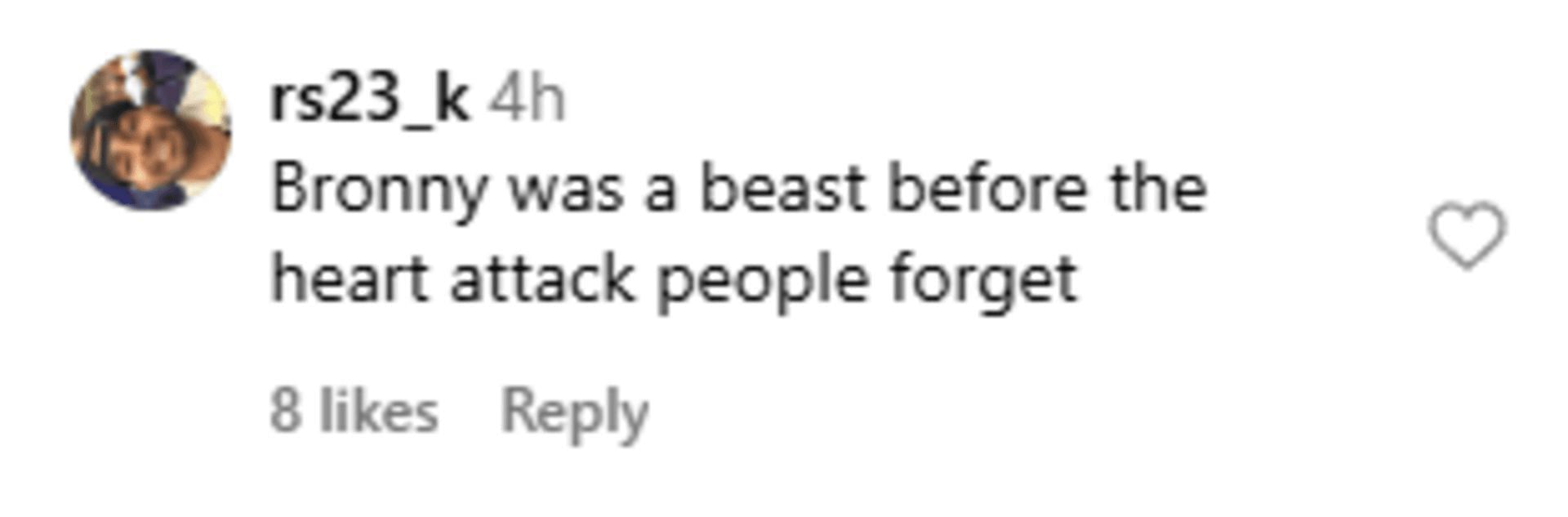 "Ppl genuinely be forgetting bronny did spectacular his senior year it was his heart attack that set him back"