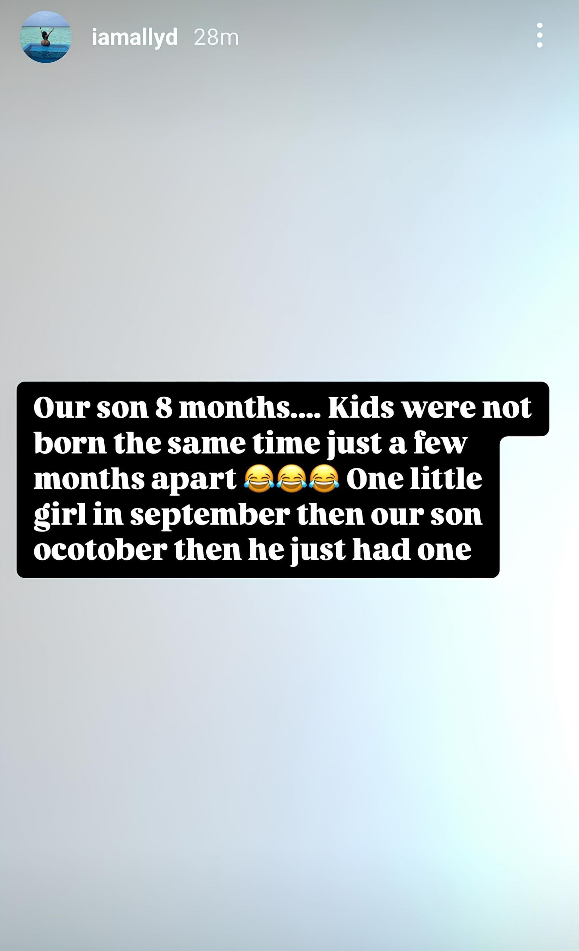 “Our son 8 months…. Kids were not born the same time just a few months apart. One little girl in September. Then our son October then he just had one.”
