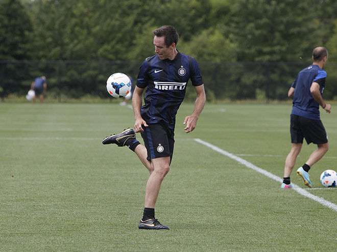 Steve Nash warms up before his try-out with Inter Milan in hopes of joining the Guinness International Champions Cup on Tuesday, July 30, 2013 in Whippany, New Jersey.