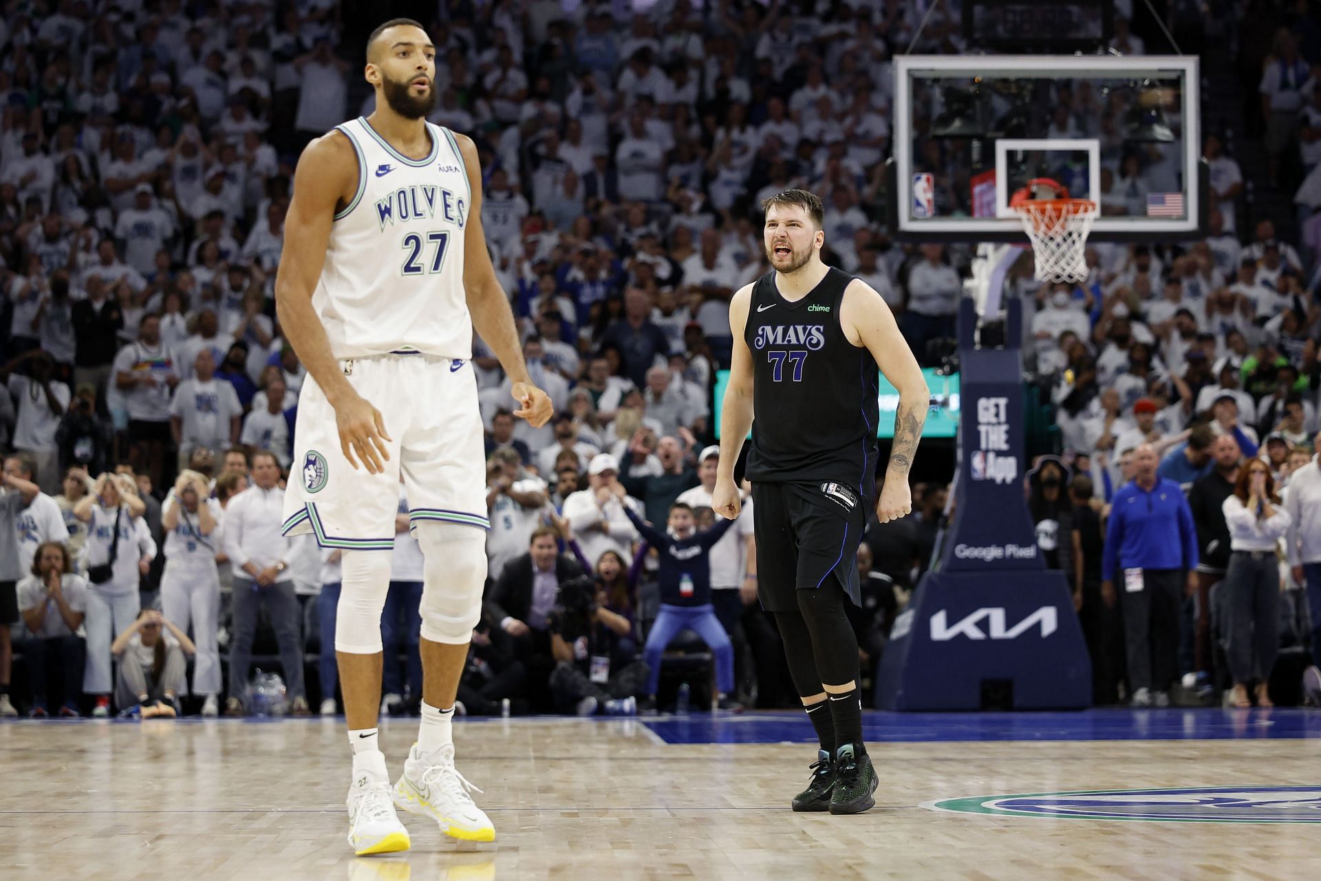 Tied late in the game, Luka Doncic dribbled into a step-back deep three over Rudy Gobert (the 2024 Defensive Player of the Year) that brought the Target Center to its feet as they took the series lead 2-0 against the home team, Minnesota Timberwolves.