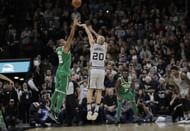 With scores tied at 102 in the closing stages, Ginobili came off the screen by LaMarcus Aldridge and made the clutch rainbow 3 that sank the Celtics.