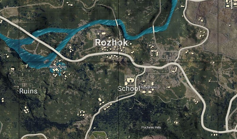 Water Town is situated between Ruins and Rozhok and is one of the safest places to land on the Erangel map of Battlegrounds Mobile India. Gamers tend to get off at School or Rozhok, making this location a safe space.