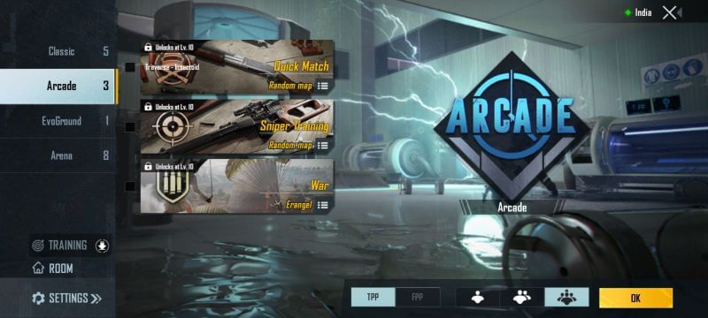 Next up are the game modes that both the games feature. When it comes to BGMI, players can enjoy Classic Battle Royale, Arcade, EvoGround, and Arena game modes. All these are different types of PvP matches that players can choose and play. For example, in arena mode, players can team up and play 5v5 matches against other teams.