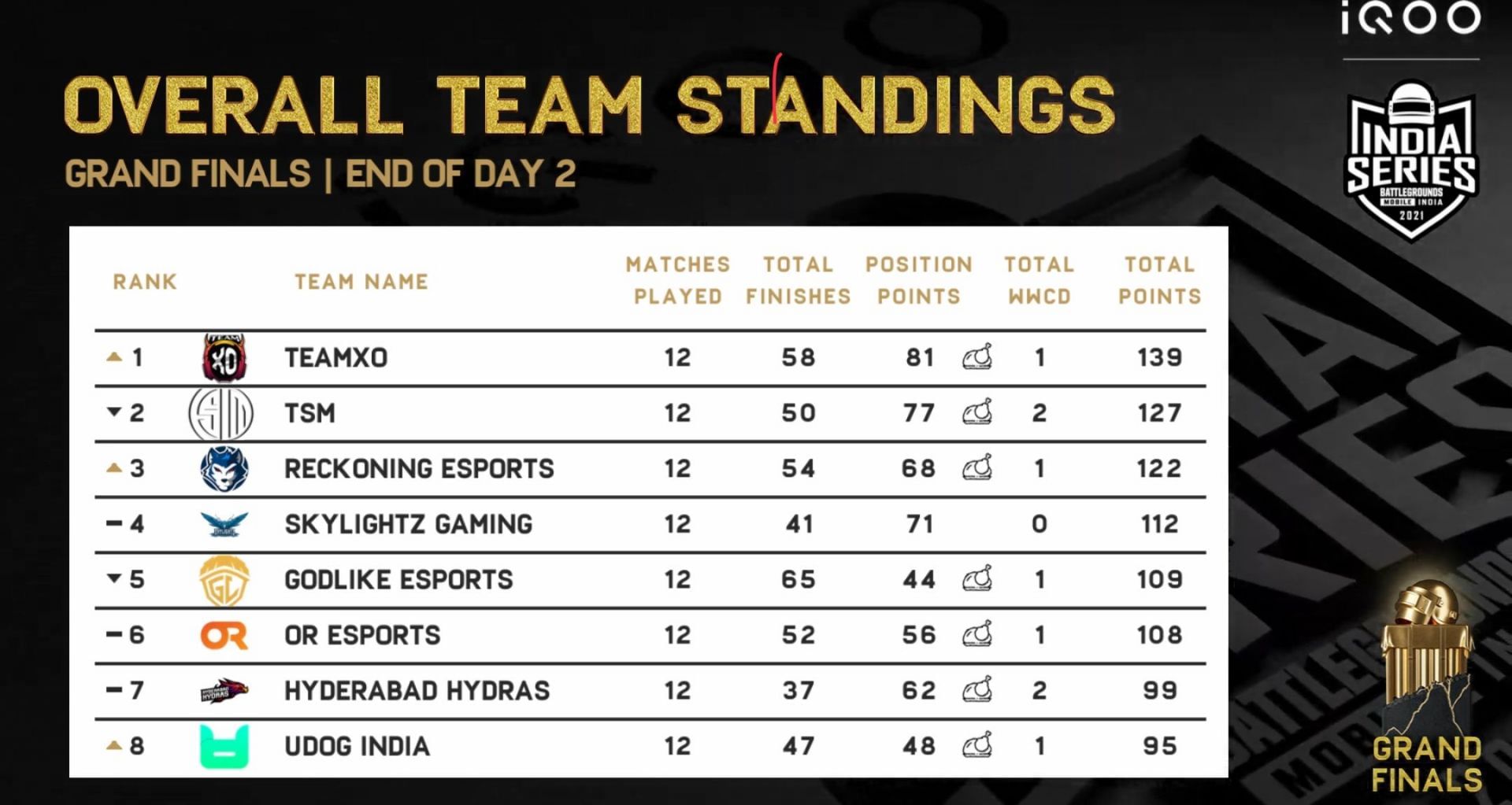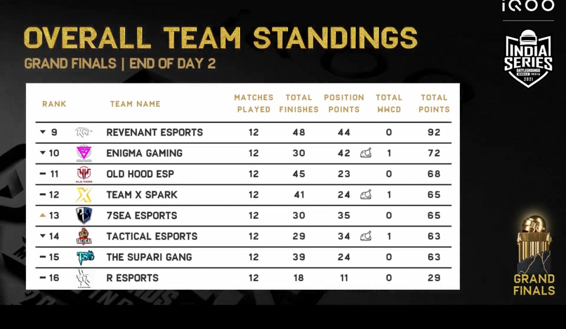 Newcomers to the Tier-1 scene, Tactical Esports, REsports, and The Supari Gang found themselves in the bottom half of the points table. These teams will look to bounce back in the remaining two days of the competition.