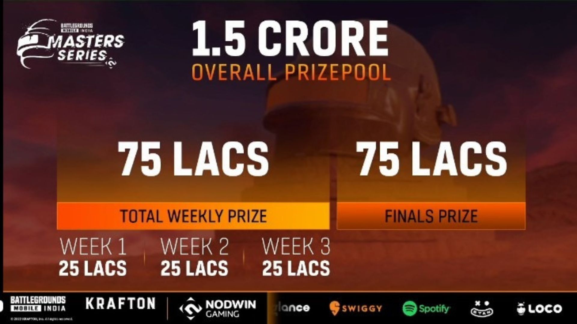 Nodwin Gaming revealed the weekly prize pool of the BGMI Masters Series 2022, a huge 1.5 crore LAN tournament which started yesterday and will continue until July 17.