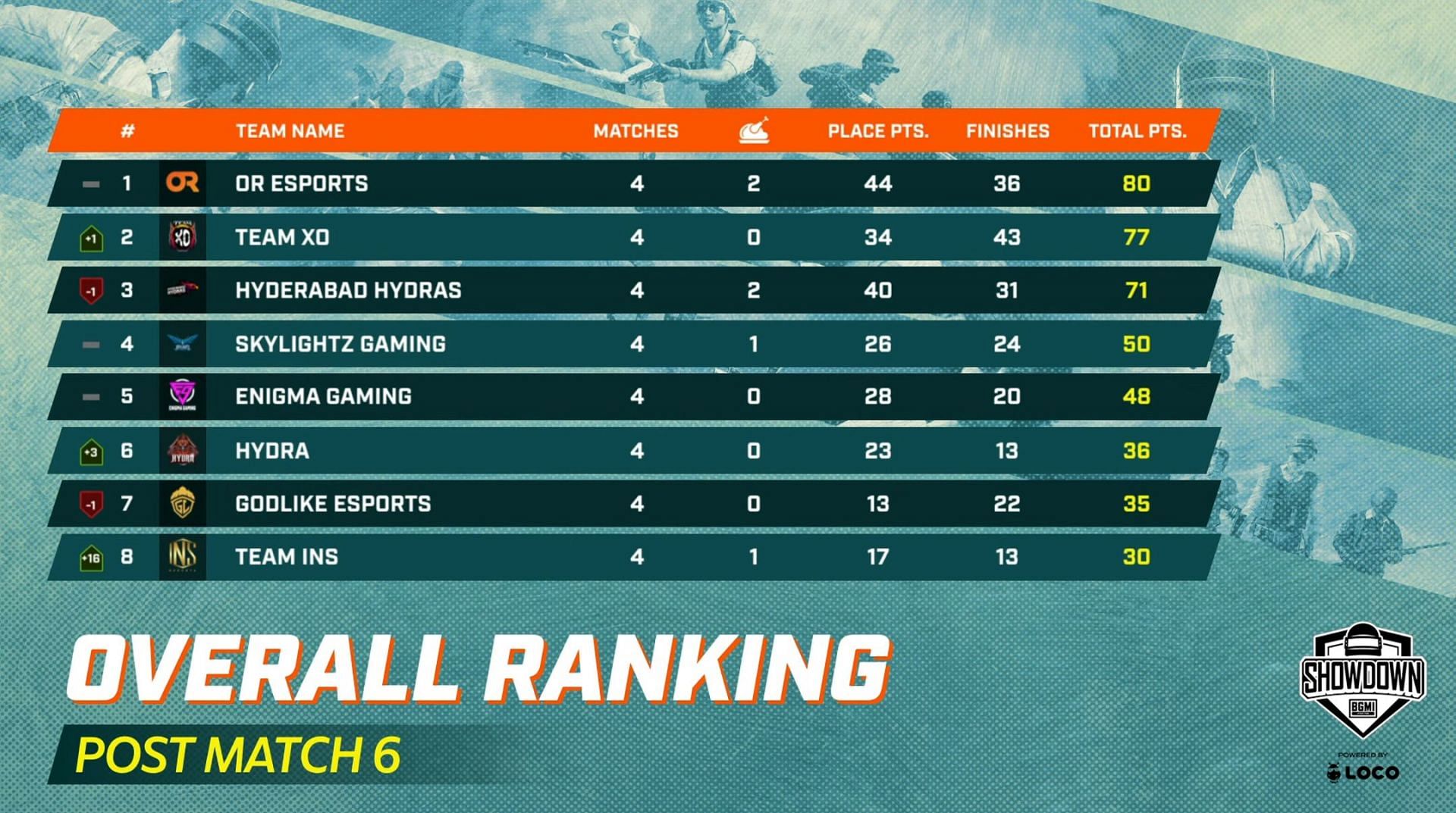 The BGMI Showdown started today, with the three groups of eight teams competing in six matches of the Group Stage. OR Esports, Team XO, and Hyderabad Hydras finished in first, second, and third place with 80, 77, and 71 points, respectively.