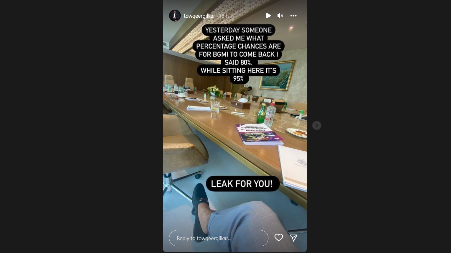 Gilkar even posted a story on his Instagram handle that hinted at Battlegrounds Mobile India's potential comeback. In the story, he wrote that someone had recently asked him about the chances of the game being unbanned. His response at the time was that he was 80% certain that it was coming back.