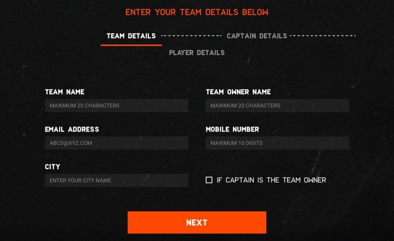Step 3: Users should fill up their team name and player's information, such as name, email id, character id, nationality, mobile number, etc.