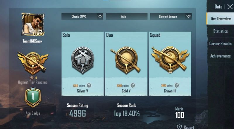 Snax is placed in Crown 3 in squad matches. In the meantime, Silver 5 and Gold 5 in solo and duo mode, respectively.
