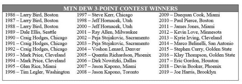 See below for the 2020 MTN DEW 3-Point Contest field and a list of previous winners.