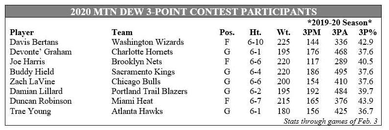 Defending champion Joe Harris and NBA All-Stars Damian Lillard and Trae Young headline 2020 MTN DEW 3-Point Contest