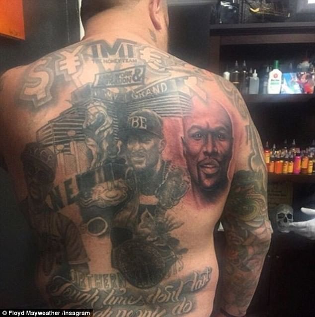 ‘Money’ recently expressed his gratitude via social media to one of his most steadfast fans. The superfan, who has covered his entire back with tattooes glorifying the boxer, must have been ecstatic when his idol posted this picture on his Instagram account with this message: “I love my fans. I love you my friend. Thanks for 20+ years of support. Fans like you are the reason why I win both in and out of the ring.”: