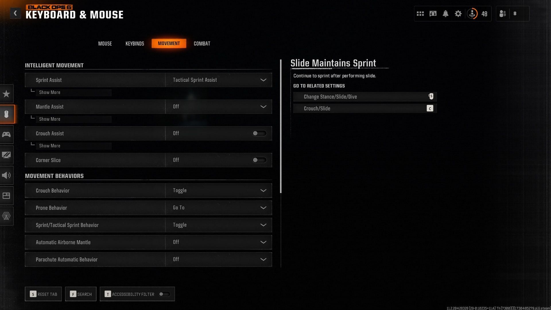 For instance, disabling crouch assist is essential when sliding as this setting automatically crouches your character, which can slow you down. Similarly, there are various other settings to consider, depending on whether you're using a controller, or a keyboard and mouse.