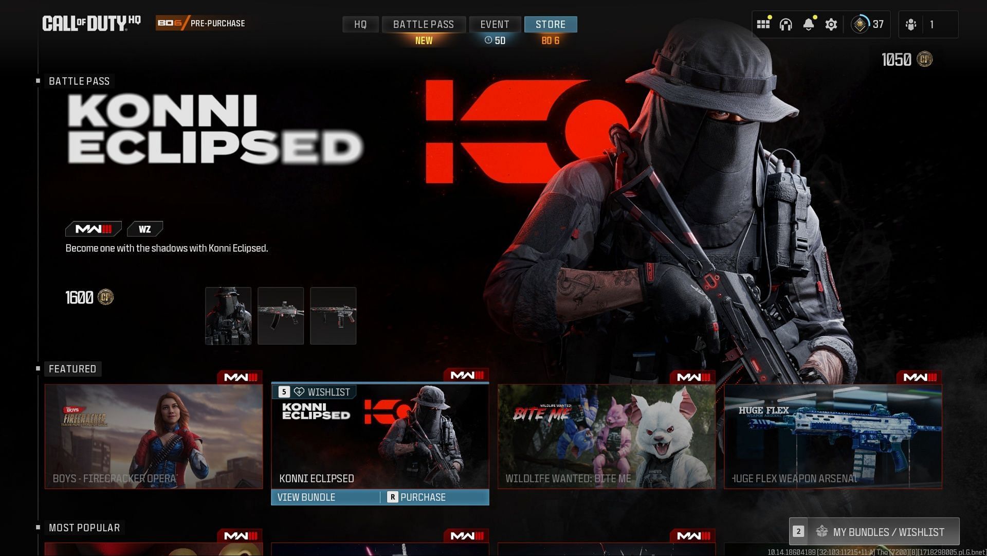 The Konni Eclipsed bundle in Call of Duty Warzone and Modern Warfare 3 is priced at 1600 CP (Call of Duty Points), equivalent to roughly $15.