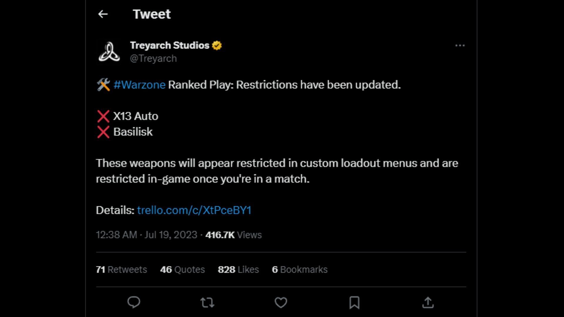 Treyarch Studios recently announced on Twitter an additional layer of restrictions spread across Warzone 2's Ranked Play. The game’s best close-range meta weapon for Season 4 Reloaded has been revealed to be the Basilisk. This weapon's performance has been phenomenal and overpowered.