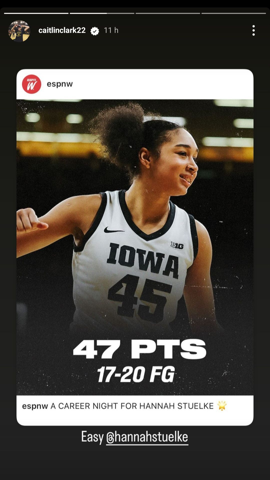 After the game, the $818,000 NIL-valued Clark backed Stuelke on her Instagram stories with the simple caption: