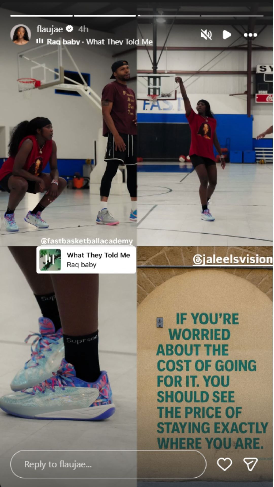 Flau'jae Johnson is utilizing the offseason to refine her skills for the 2025-26 season. The guard is fresh off a vacation and wasted no time in hitting the gym. In her Instagram story on Monday, Johnson posted a four-image collage of her workout session. The photos showcased a few moments from the practice, her sneaker of choice, and a motivational quote.