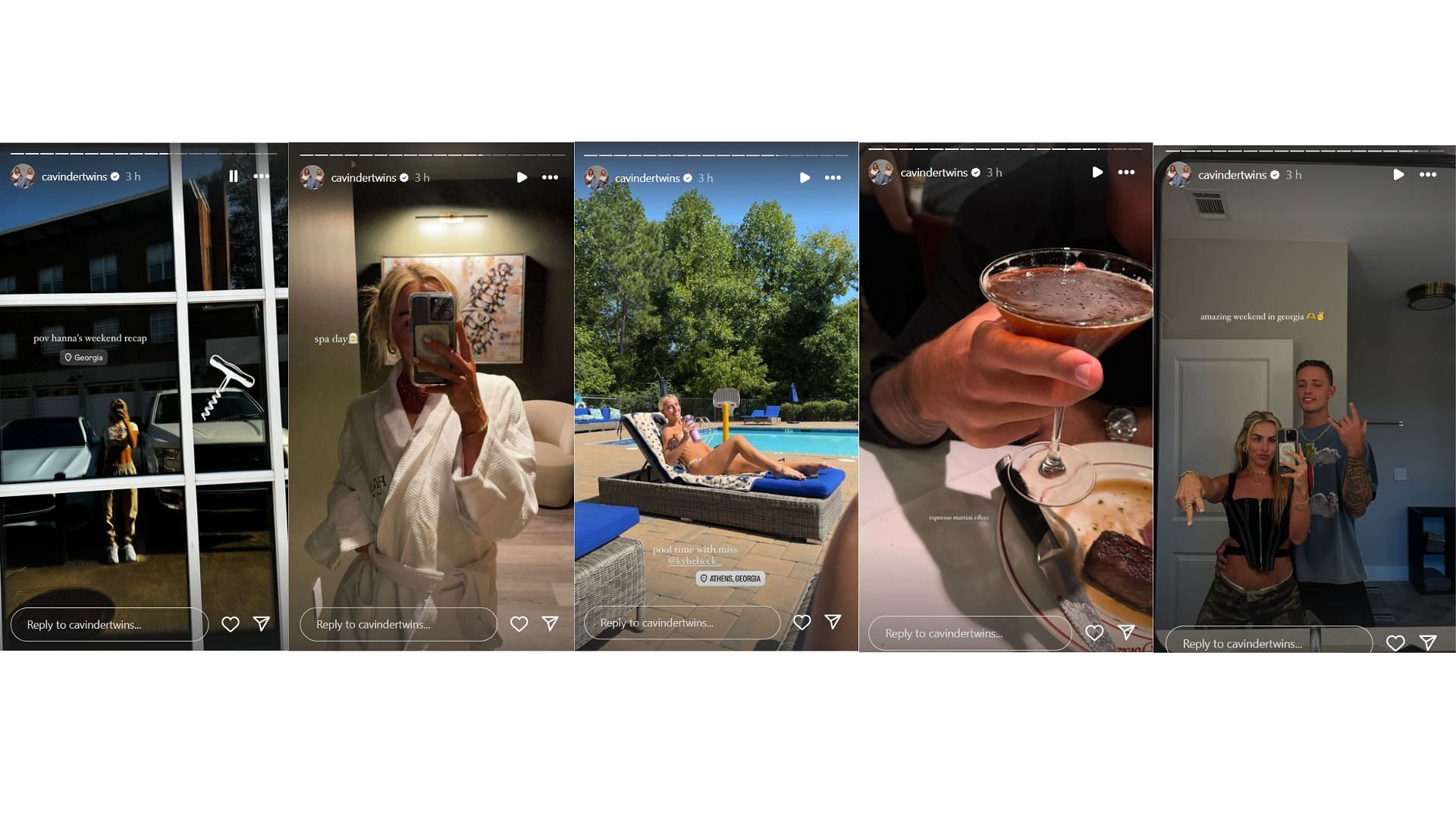 Hanna Cavinder shared a series of snaps on Instagram that recapped her weekend with Carson Beck. She was seen enjoying a relaxing spa and spending time with the QB's sister, Kylie, who is part of the Bulldogs' cheerleading squad. Next, the couple enjoyed a few drinks. The recap was summarized with an image of the two and a message that read:
