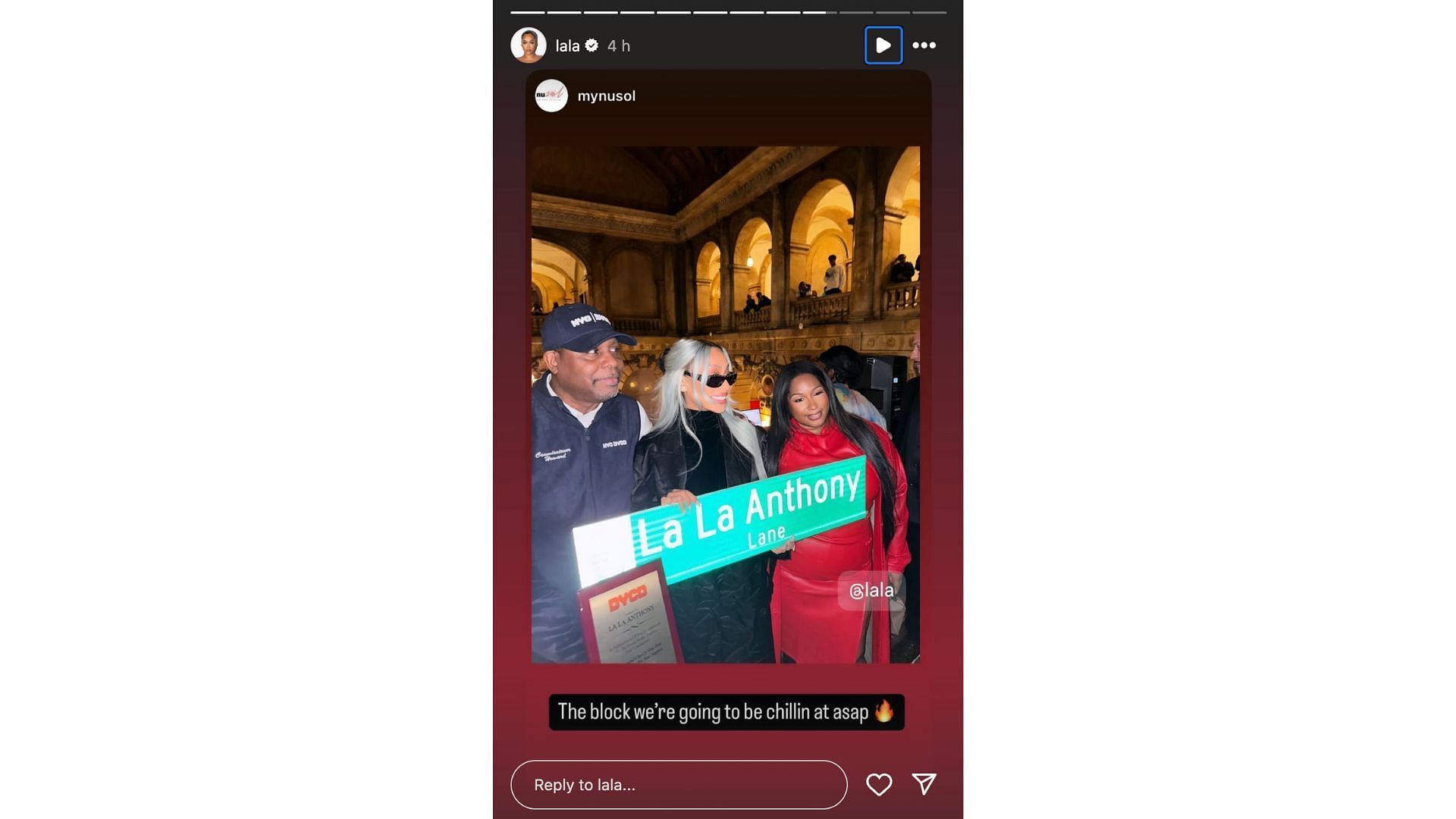 On Saturday, La La Anthony shared photos from the ceremony on her Instagram story with her holding a plaque that read, 'La La Anthony Lane.'