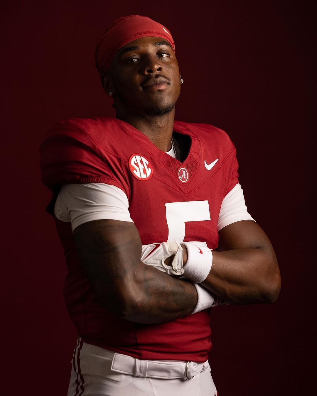 Germie Bernard will wear the number 5 jersey for the Alabama Crimson Tide football team in 2024. He wore the jersey number 4 for the Washington Huskies and Number 5 for the Michigan State Spartans.