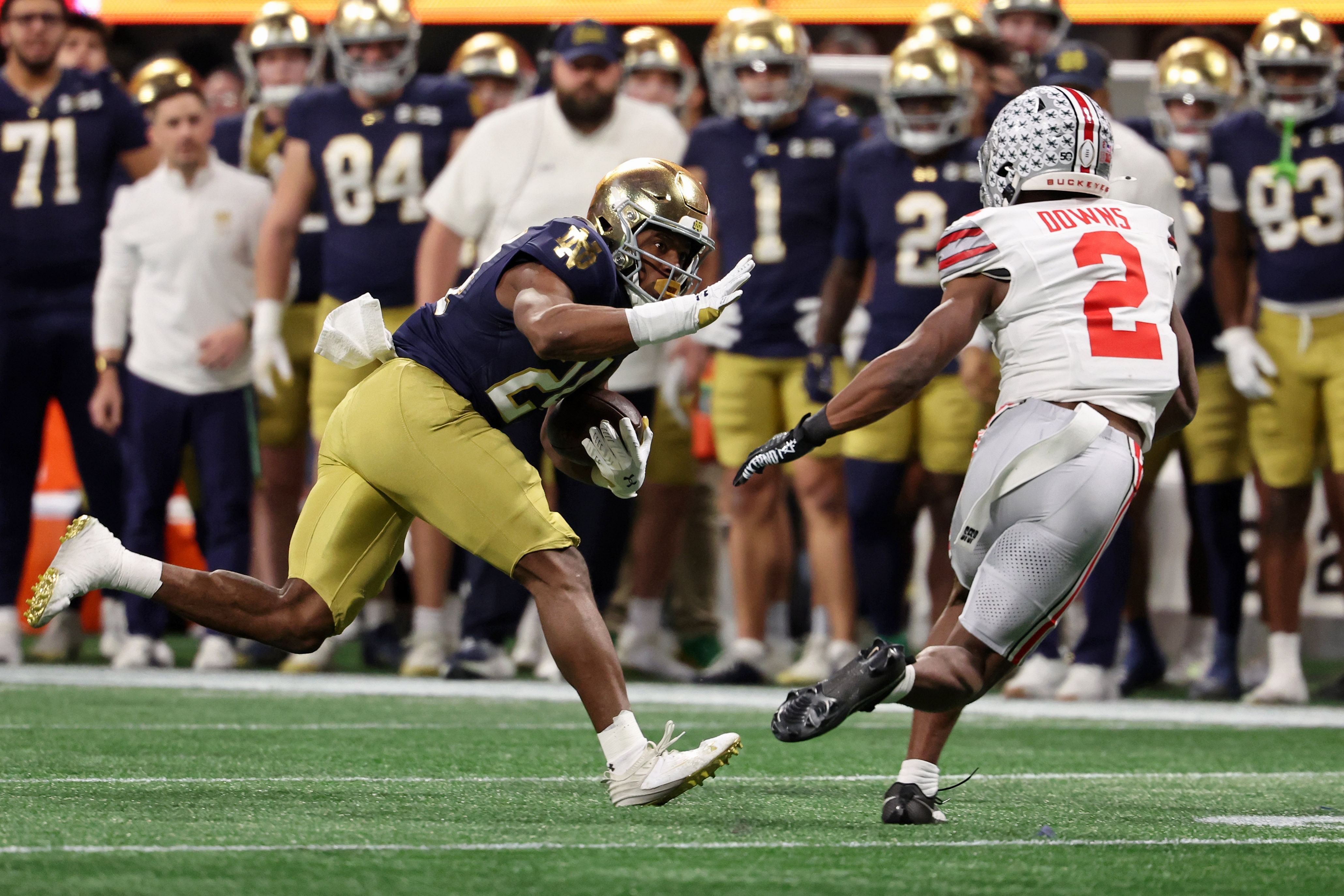 Caleb Downs and the Buckeyes did stymie the Notre Dame rushing attack, holding the Irish to 53 rushing yards on 26 carries. This was by far the weakest rushing performance of the season by Notre Dame. Their previous low was 117 yards and 2.8 yards per carry.