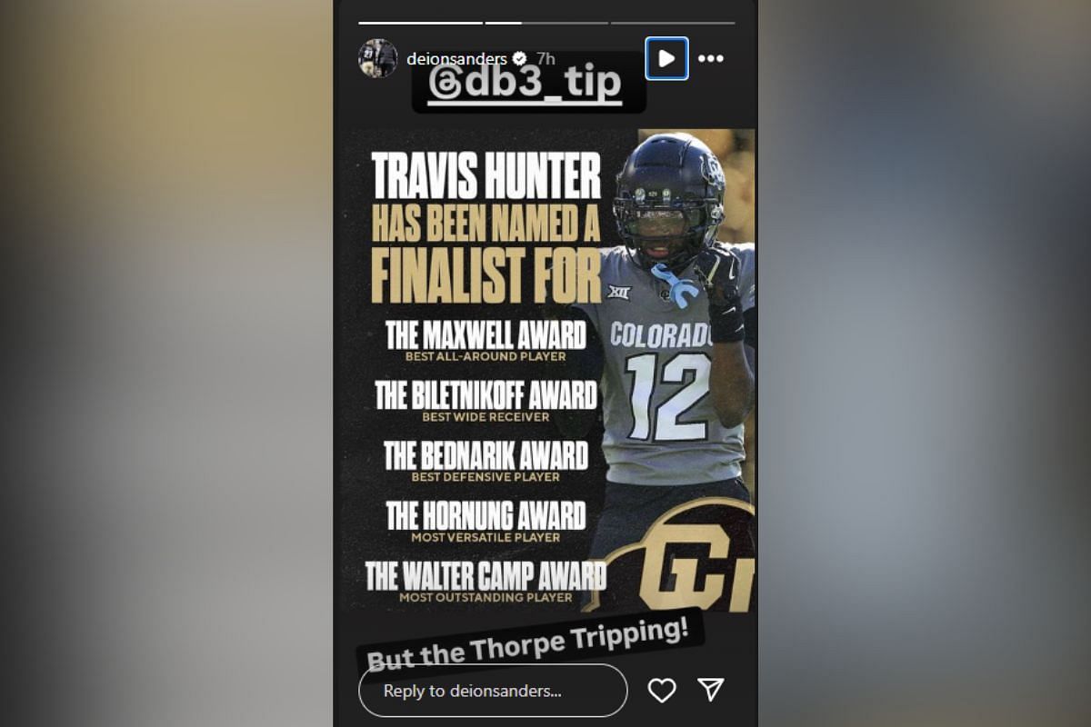 On Tuesday, Sanders took to his Instagram story and posted a list of all of the individual college football awards that named Hunter as a finalist. Coach Prime then aimed a dig at the Jim Thorpe Award.